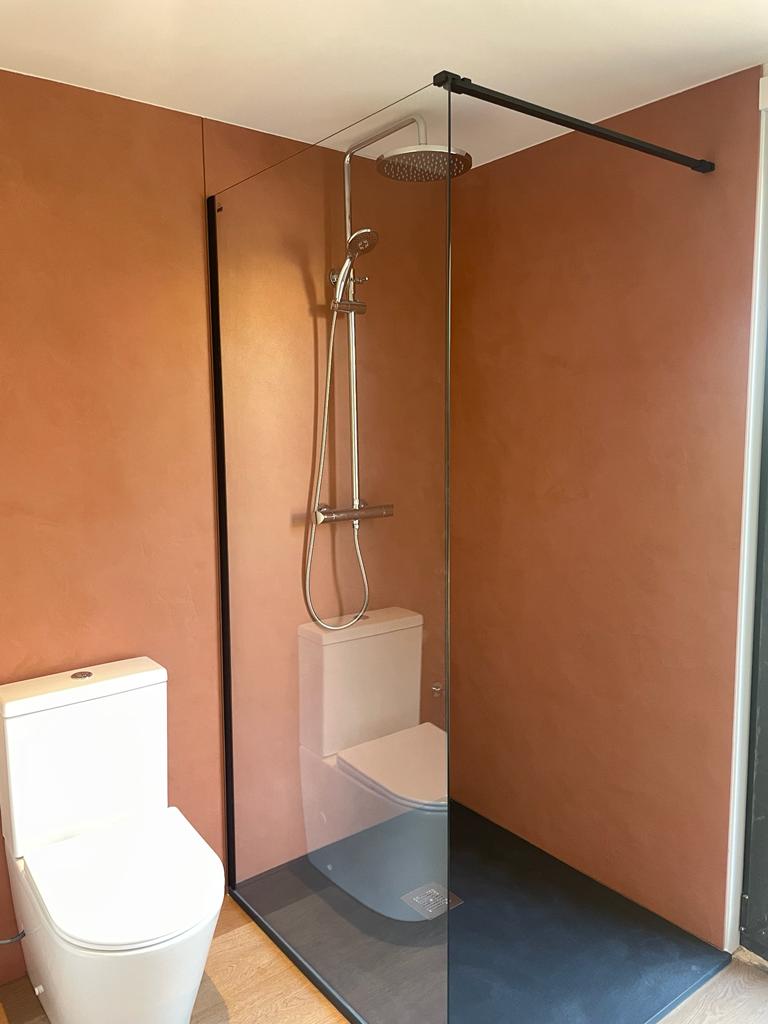 Como veis hemos metido las piezas de fachada en el interior para forrar los baños. Con tres piezas lo hemos resuelto, y el resultado esta a la vista. Limpio y elegante.